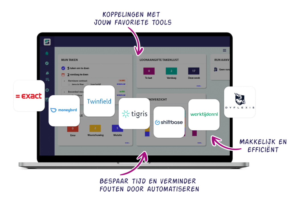 Wij bieden uitgebreide koppelingen aan met software voor boekhouden, urenregistratie en verzuimverzekeraars. Hierdoor worden processen die eerder tijdrovend en foutgevoelig waren ineens makkelijk en efficiënt.